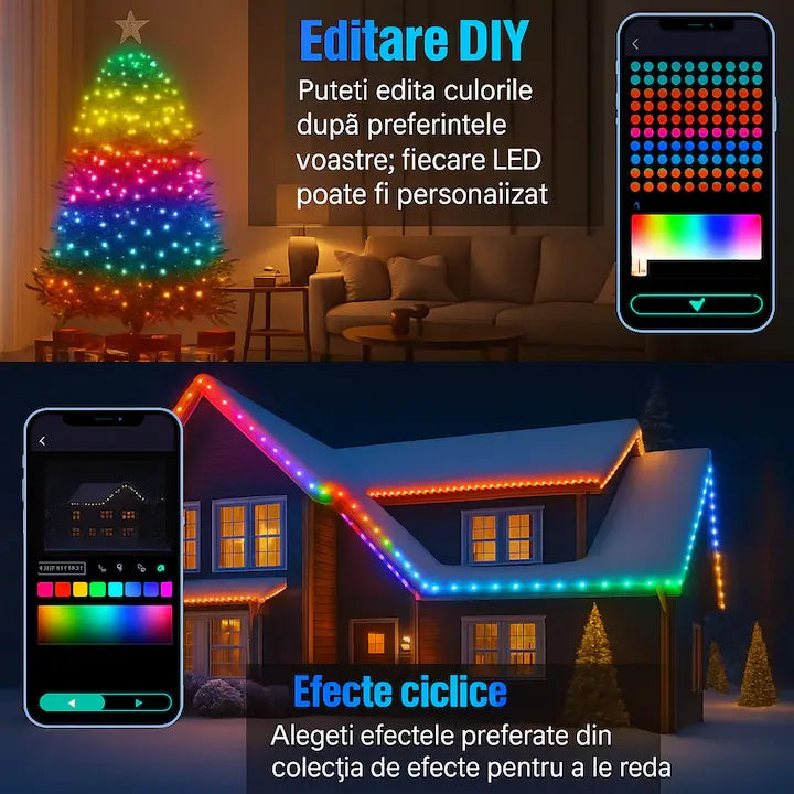 "Instalație super luminoasă și foarte ușor de controlat din aplicație. Bradul arată de poveste!"